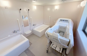 広々とした空間にこだわり浴槽と天井走行リフトを設置
