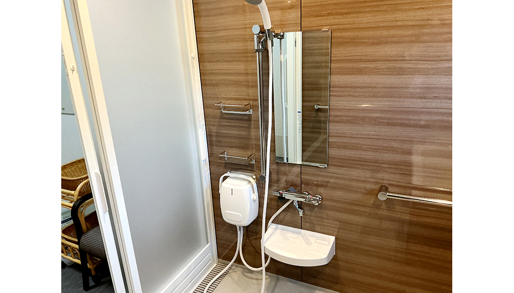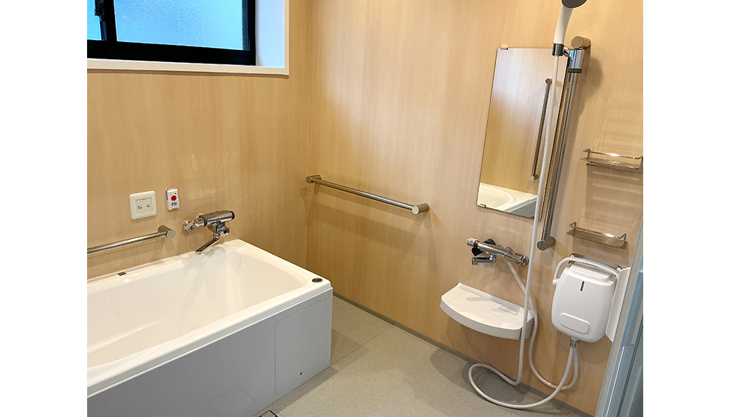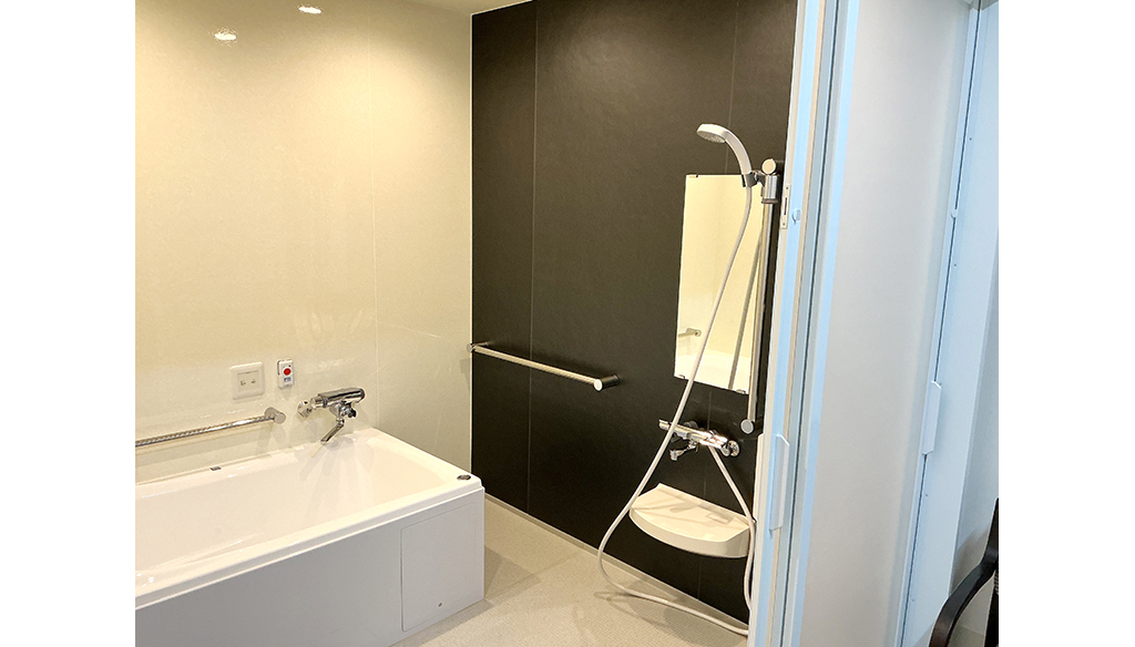 - 水栓:シャワー水栓1ヶ所(泡シャワー“KINUAMI Care”を設置/酒井医療(株))、浴槽水栓1ヶ所
