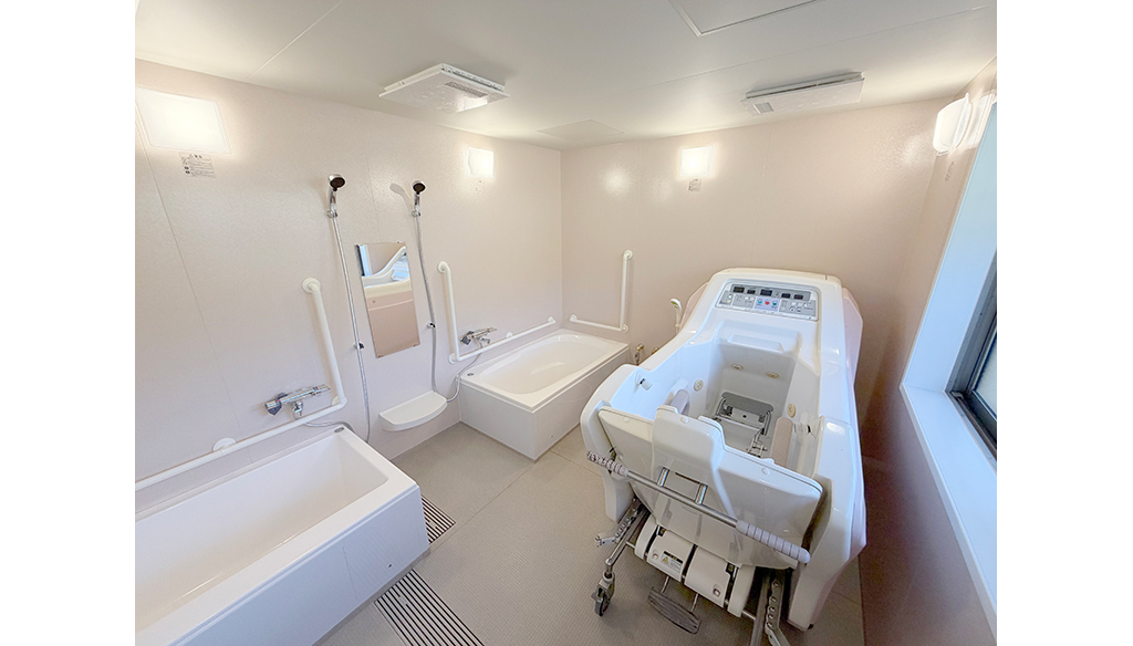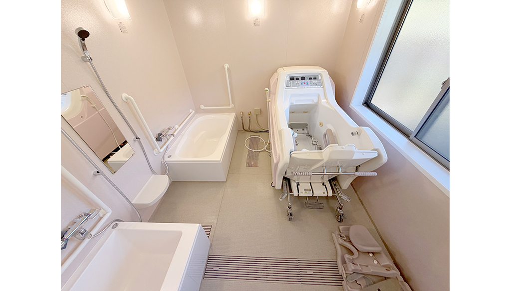 2550×3400mmの限られたスペースに、浴槽2台と機械浴槽(トゥッティ)を効率よく配置しました。