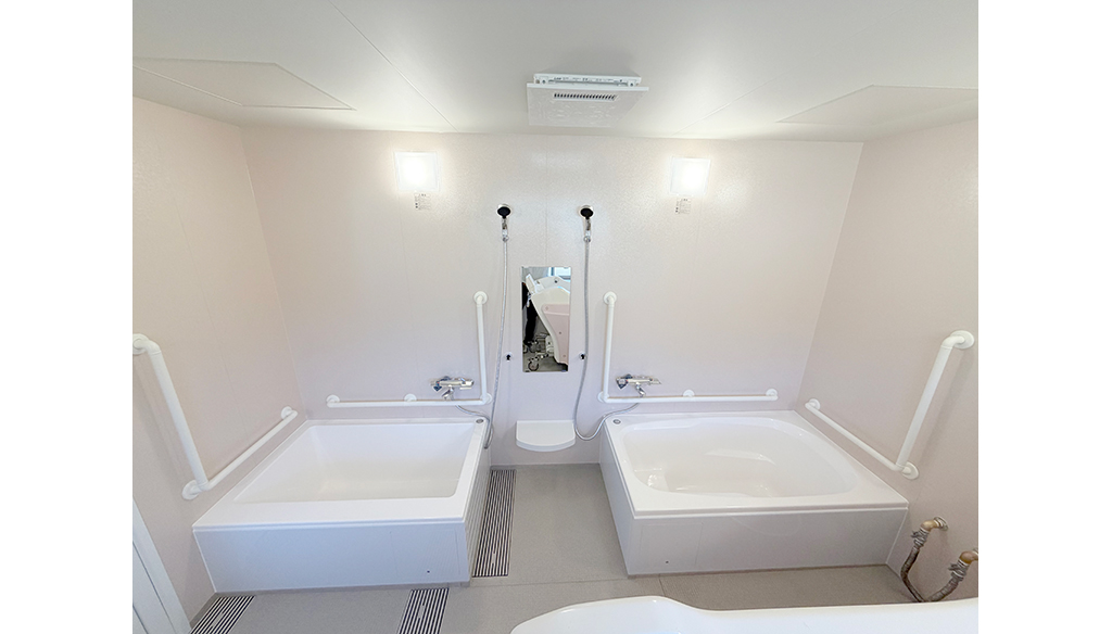 小スペースでも浴槽2台と機械浴槽の設置を実現