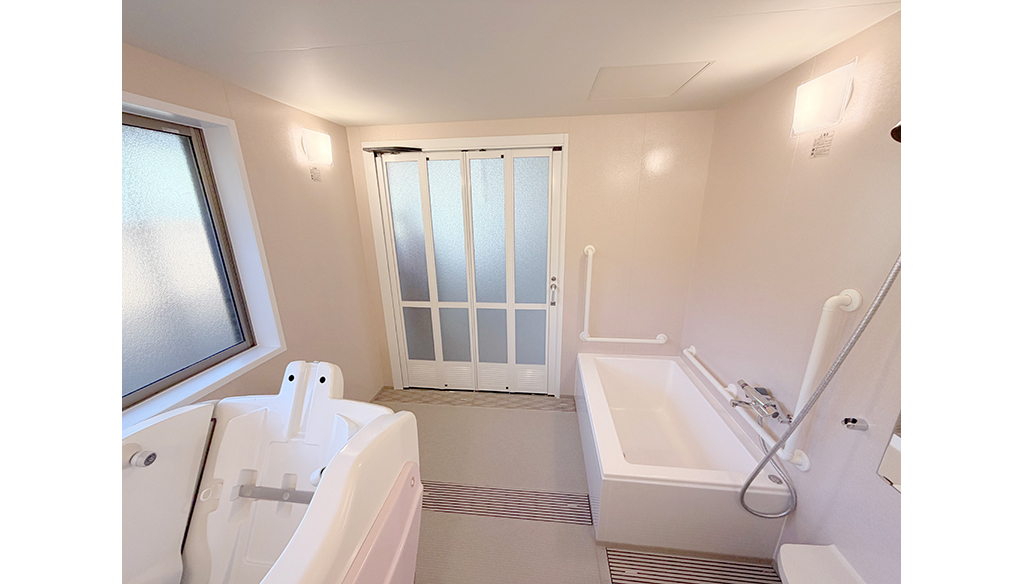 2550mm×3400mmで動線と介助性を確保在来浴室を、介助しやすいシステムバスへ改修した事例です。