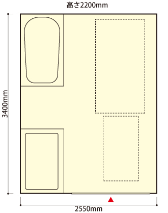 ユニットサイズ:2550mm×3400mm×高さ2200mm